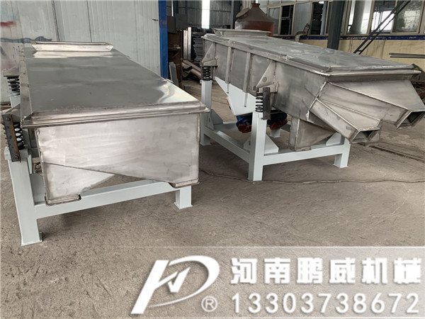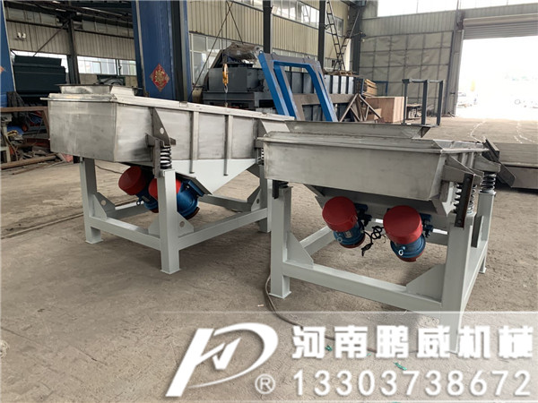 鵬威機械生產的直線振動篩暨直線篩是針對大顆粒物料或細粒度粉狀物料而設計的長方形振動篩選機,主要針對產品要求處理量大、產品附加值不是很高的產品生產工藝使用,性價比較高。是利用振動電機為激振源,通過振動電機的振動力使物料在篩面上被拋起,跳躍式向前作直線運動,以合理匹配篩網達到篩分的目的,適用于0.074-5mm的任何物料進行篩分或過濾。較大給料粒度建議不大于30mm,單小時處理量一般不超過0-50噸的物料篩分。