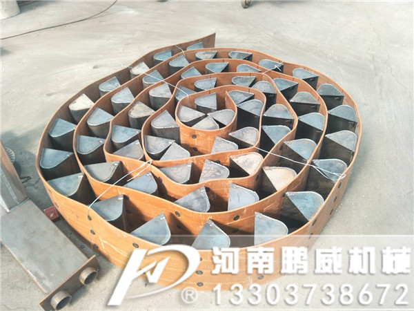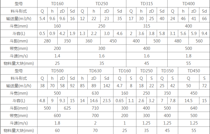 TD型斗式提升機是膠帶提升機,本公司產品根據(jù)斗子寬度可分四個型號:TD160、TD250、TD350、TD450,可采用深斗淺斗滿足不同的生產需求,最大能輸送69.6m3/h物料,提升高度為4-30m。傳動裝置TD型斗提升機的傳動裝置有兩種形式分別配有YZ型減速器ZQ(或YY)型減速器。YZ型軸減速器直接裝在主軸軸頭上,省去了傳動平臺、聯(lián)軸器等,使結構緊湊、重量輕,而且其內部帶有異型輥逆止器,逆止可靠。該減速器噪音低,運轉平穩(wěn),并隨主軸浮動,可消除安裝應力。TD型斗式提升機的牽引件為橡膠帶,料斗以一定的間隔固定在橡膠帶上,橡膠帶分別繞過提升機頭部和底部的滾筒,構成具有上升有載分支和下降無載分支的閉合環(huán)形系統(tǒng);工作時,布置在提升機頭部的驅動裝置通過頭部滾筒將動力傳給橡膠帶和料斗,物料從提升機底部的進料口進入料斗,料斗將物料提升至頭部的卸料口,在離心力和重力的共同作用下,料斗中的物料經卸料口卸出。