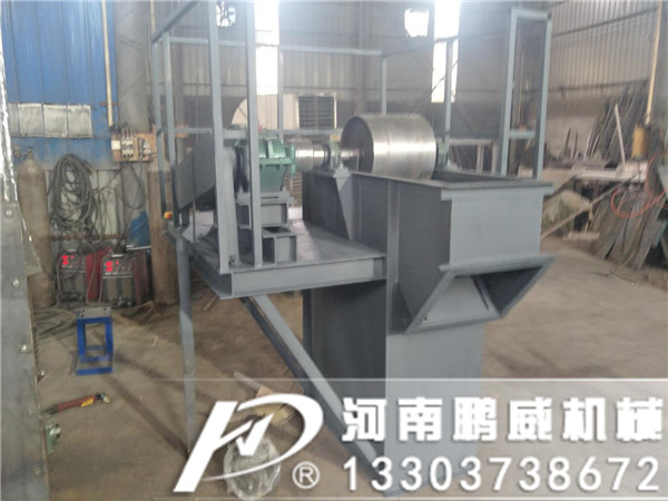 TD型斗式提升機主要由驅動裝置、上部區(qū)段、料斗與橡膠帶、中殼體、帶檢修門的中殼體、下部區(qū)段等組成,其主要結構特點是:采用橡膠帶作為牽引構件,具有自重小、撓性好、運行平穩(wěn)、磨損小的特點。殼體之間、檢修門與殼體之間處均設置有密封裝置,保證無粉塵外泄,清潔、環(huán)保。機殼和頭罩設有多個檢修門,一旦出現(xiàn)故障或者需要更換料斗等易損件時,可以便捷的進行檢修或更換。在傳統(tǒng)裝置內部設有高可靠性的逆止機構,在防止牽引件和載料料斗逆行的同時,使傳動裝置整體結構緊湊、占用空間小。中部殼體均為折彎構件焊接而成,在提高機殼整體剛度的同時,使機殼各段節(jié)具有良好的通用性和互換性,保證組裝完畢后,機殼具有良好的垂直度。在底部設有張緊機構,保證工作時皮帶有足夠的預緊力;同時在底部滾筒裝置中帶有自動調心機構,以防止?jié)L筒受到不均勻拉力后發(fā)生傾斜,進而造成設備故障。